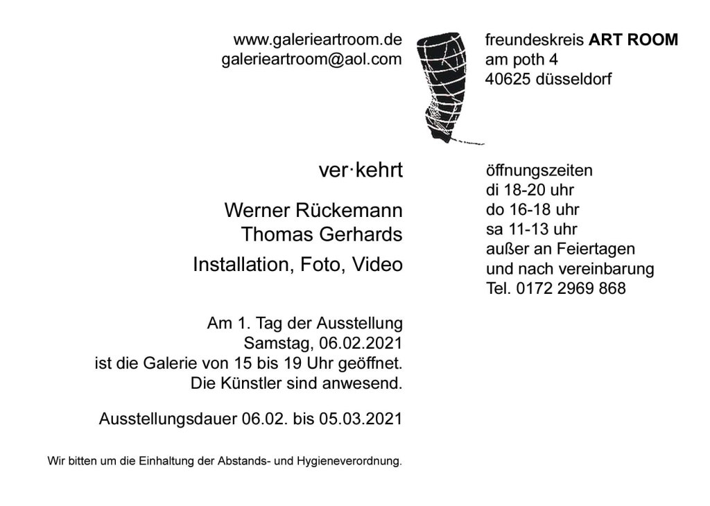 Werner Rückemann und Thomas Gerhards haben mit ihrem Gast Anja Kreysing die Räume ausgelotet und verortet. Diese Aufnahmen führten zu einer audiovisuellen Installation, die in der Galerie präsentiert wird.