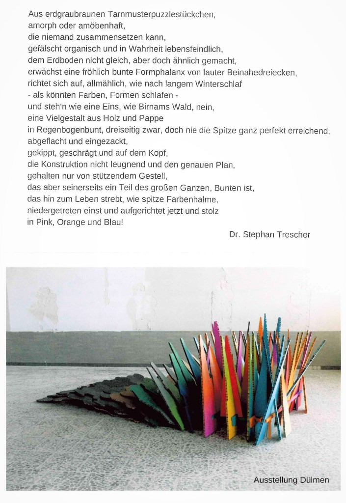 dabei wird die Empfindsamkeit seiner Objekte mit ihrer Umgebung deutlich.